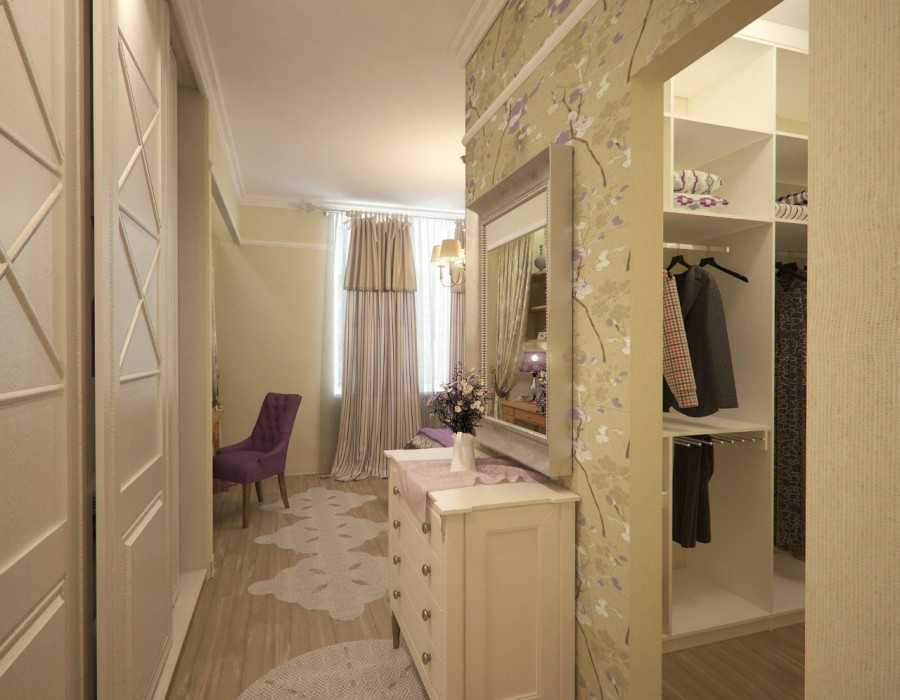 Никаких обоев с узорами и рисунками, никаких пано из плитки, ярких цветов и сочетаний кучи отделочных материалов. У вас всегда будет ещё одежда, обувь и другие предметы, плюс зеркала, которые умножат всё это на 2.
