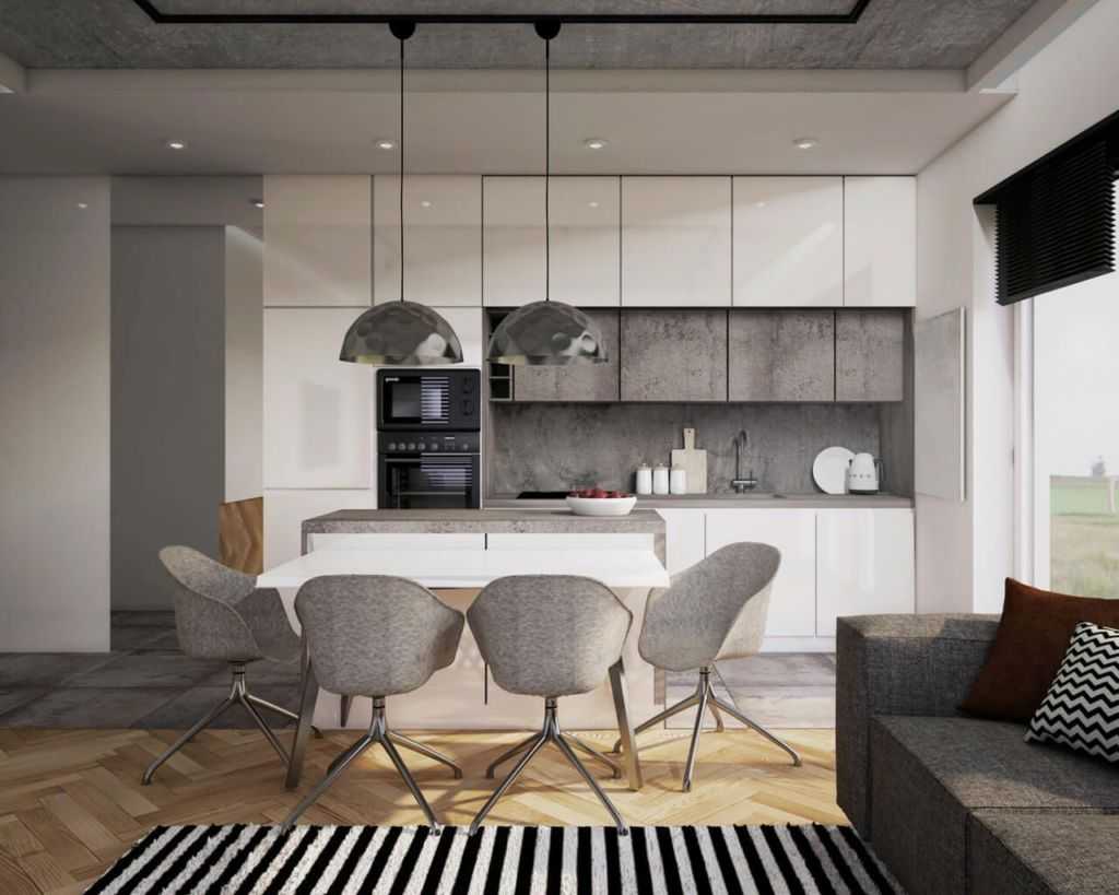 Минималистская серо-белая кухня — это та, в которой такие материалы, как: