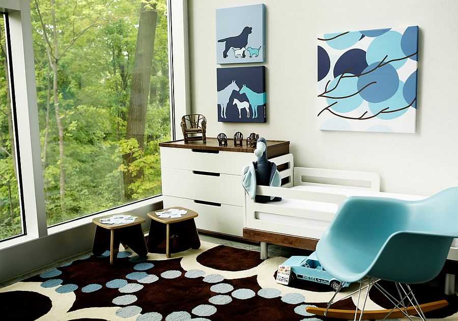 Рассмотрите естественную вентиляцию в яслях, прежде чем выбирать такую гамму для стен, поскольку небольшая спальня с плохим кондиционированием, задрапированная в темно-синюю расцветку, может сформировать обстановку клаустрофобии.