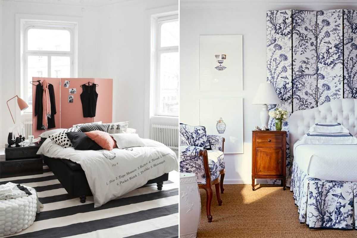 Первая считается широко использующейся. Ширма в спальне делит ее на места для смены одежды и сна. Декоративные же модели похожи на панно. Их ставят за кроватью, чтобы придать комнате объема.