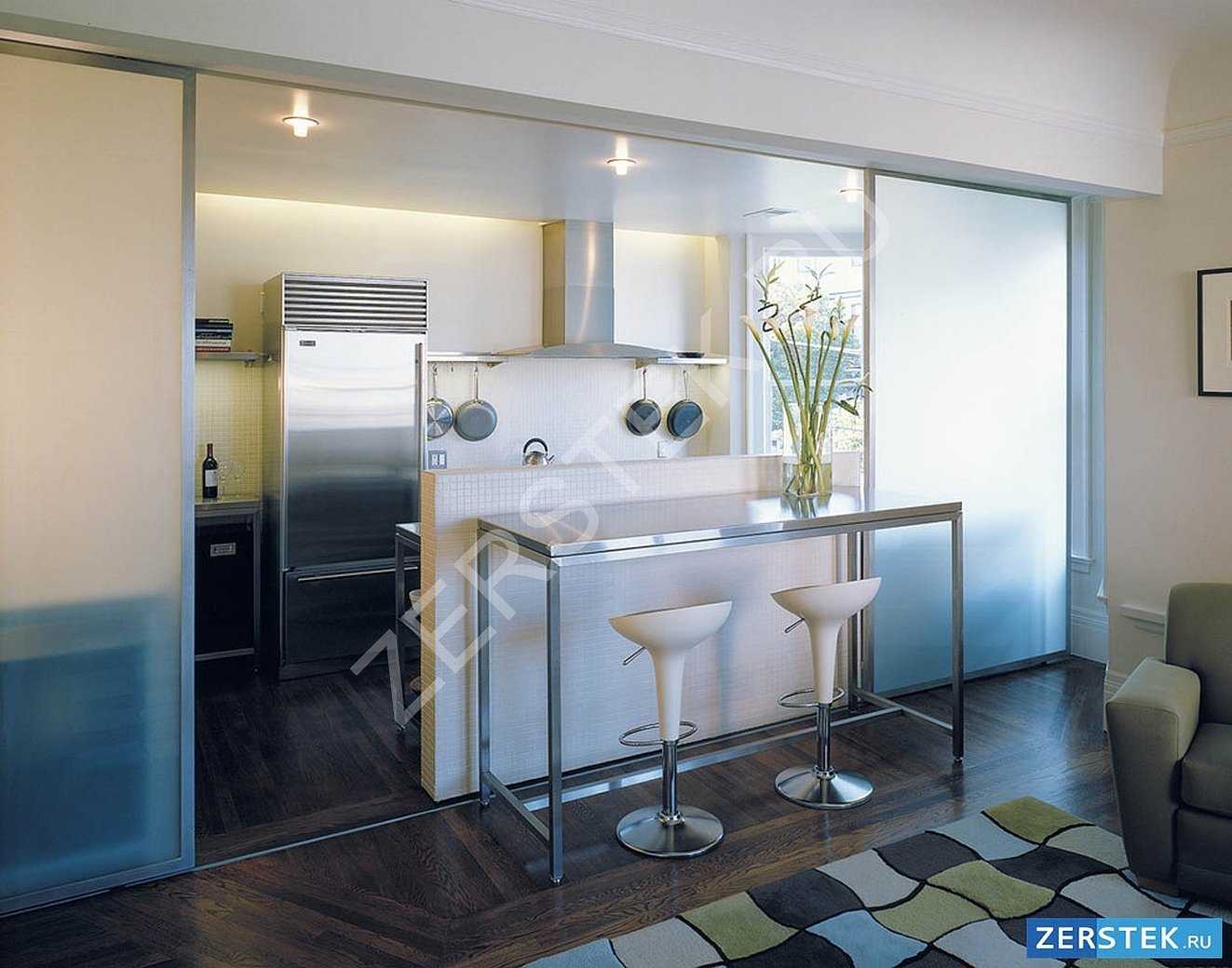 Во многих квартирах разные зоны занимают одну площадь, и отгородить их друг от друга порой просто жизненно важно. С необходимостью разделения кухонной зоны и столовой (или гостиной) дизайнеры сталкиваются чаще всего