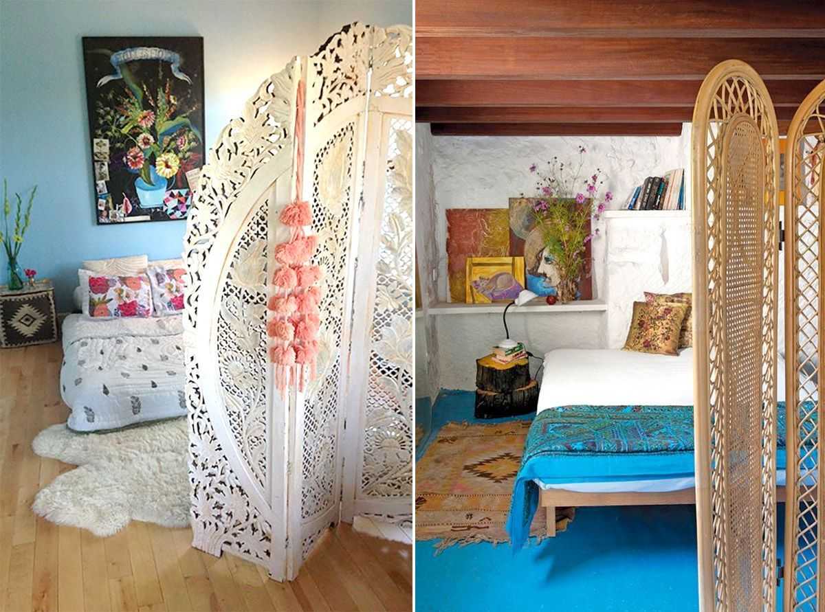 Легкая ширма с ажурной резьбой или плетением способна украсить вашу спальню