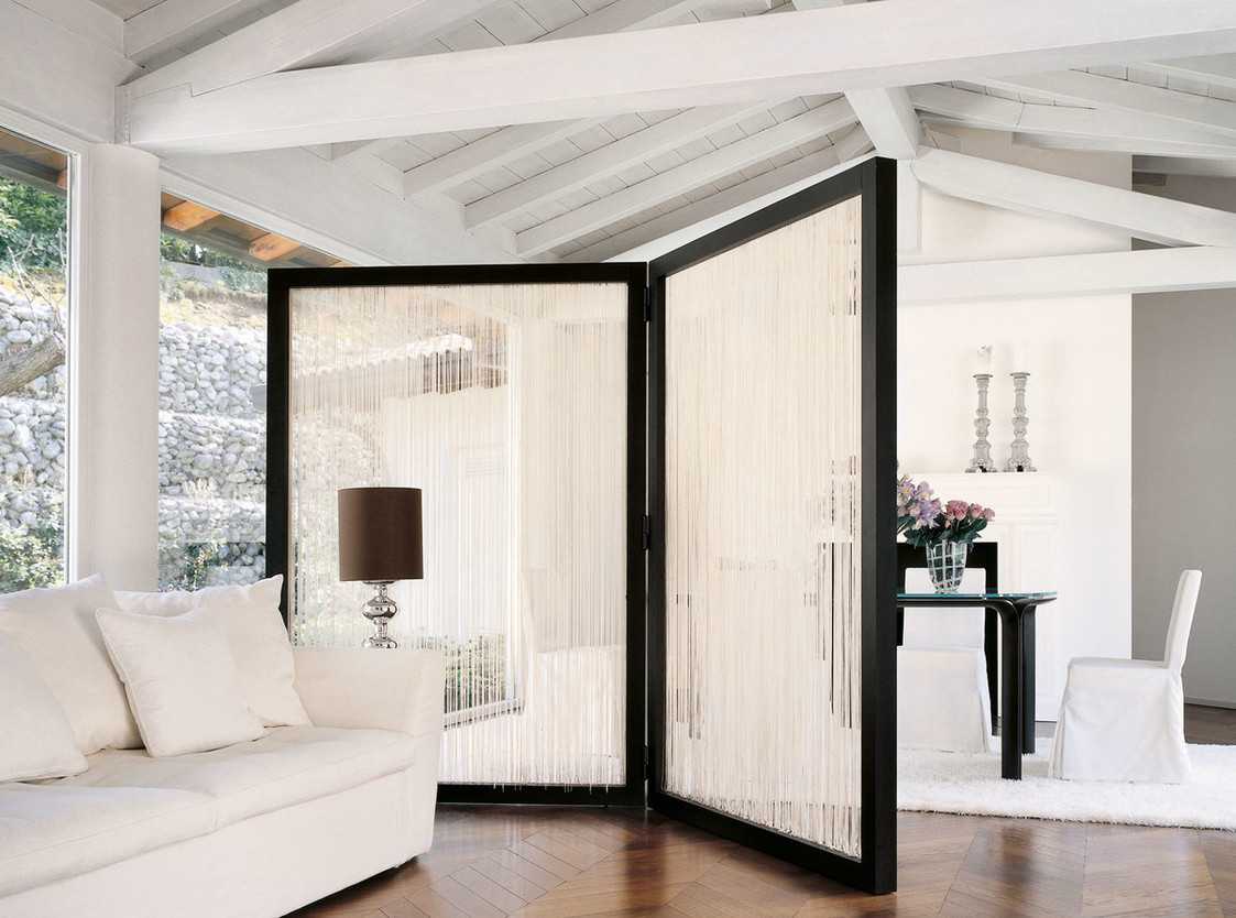 Есть и более оригинальные варианты разделения пространств: шторы из бисера, бусин, нитей, кусочков бамбука или ротанга.