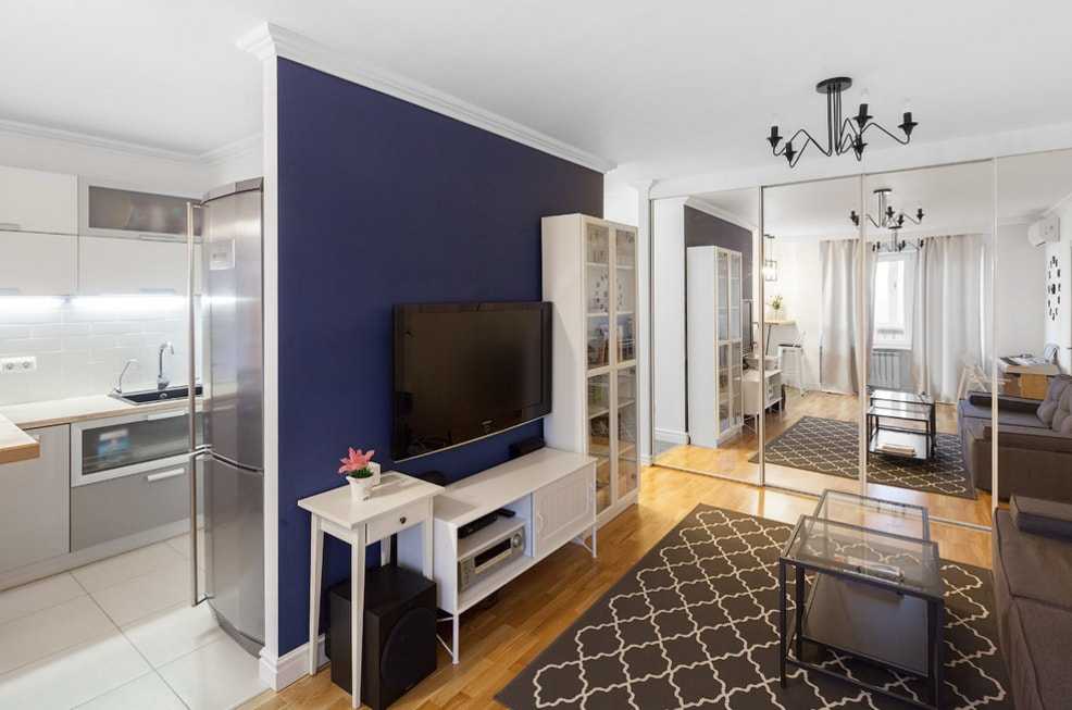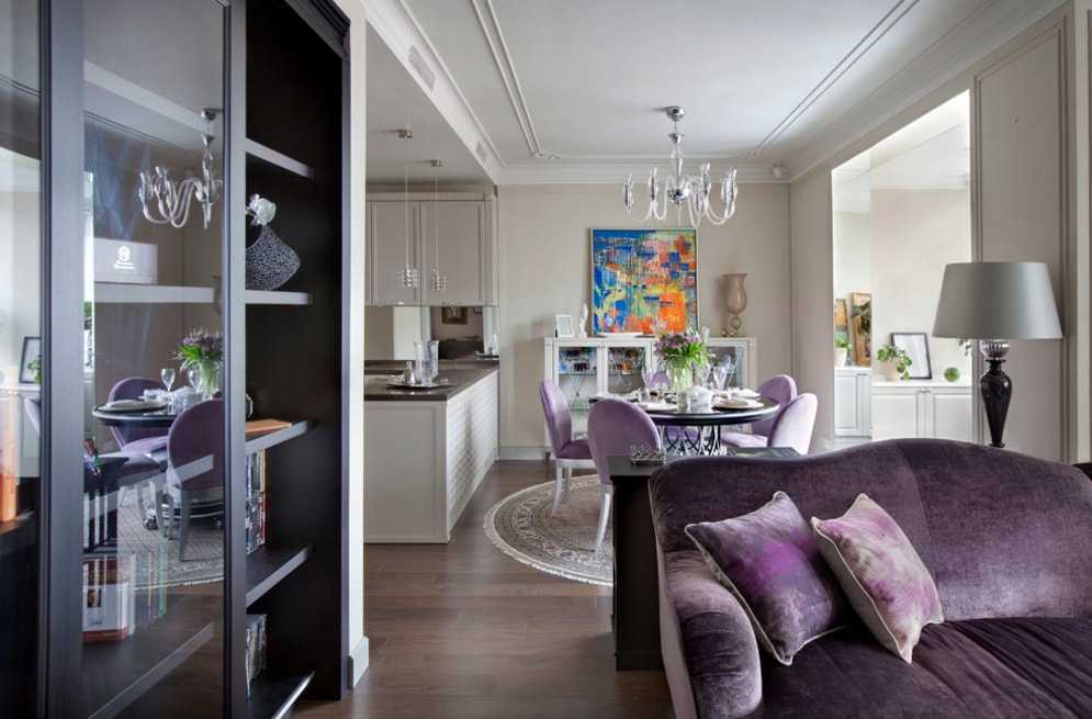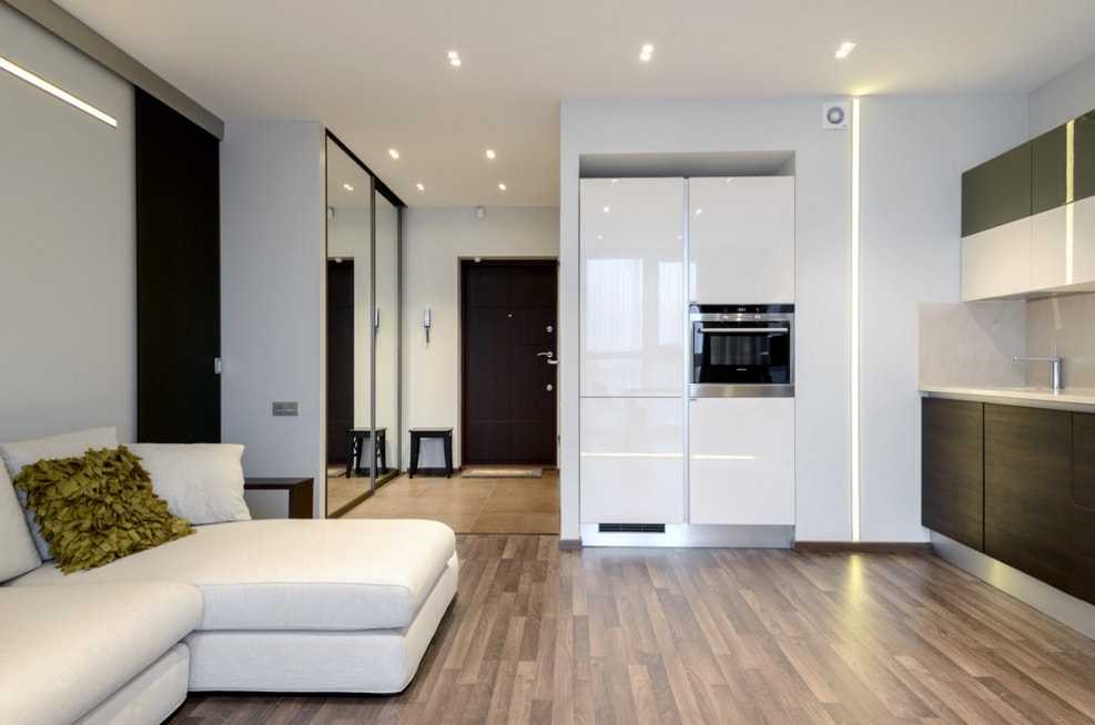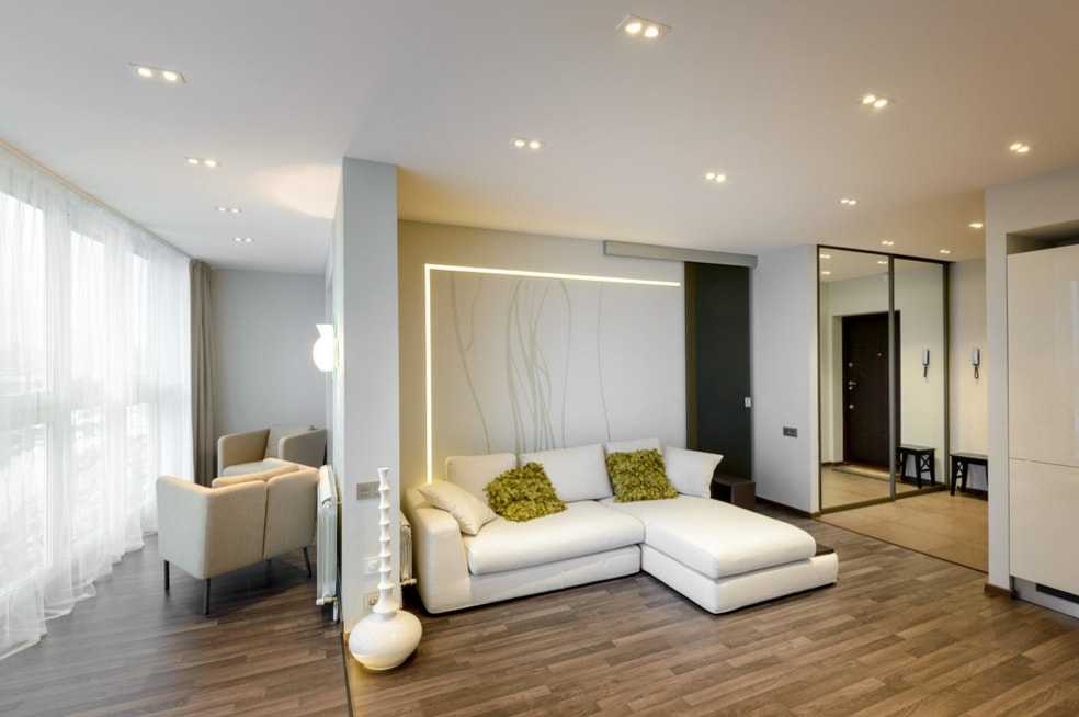 Также подобные изделия часто применяют для зонирования зала в однушке. Высокая конструкция, установленная в нужном месте, поспособствует разделению пространства на несколько функциональных участков.
