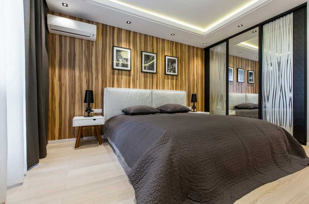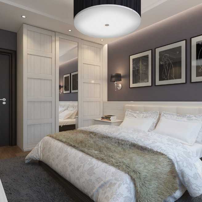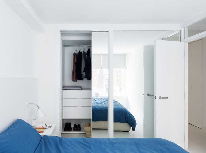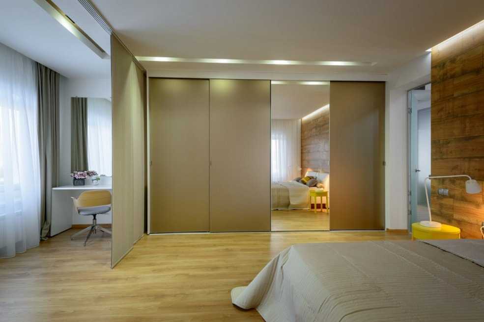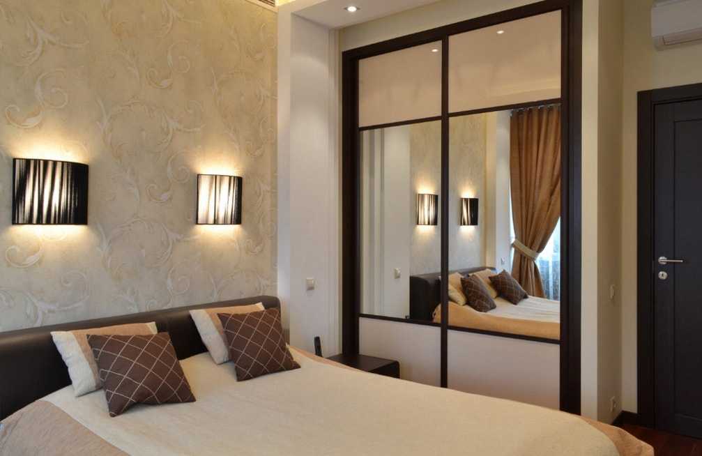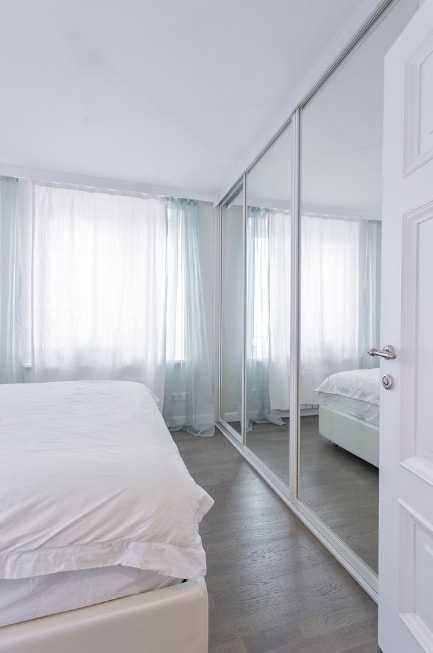 Не менее часто для спальни выбирают шкаф-купе с зеркалами, чтобы зрительно увеличить пространство. Впрочем, не всем по вкусу такой вариант, поэтому предлагаем присмотреться к матовым или глянцевым вариантам нейтральных оттенков. Они хорошо дополнят интерьер и не будут излишне выделяться.