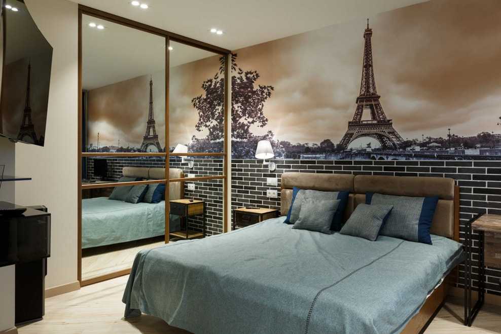 Зачастую дизайн спальни предполагает спокойные оттенки, которые помогают расслабиться, забыть о проблемах и просто помечтать. Но все же некоторые пары предпочитают вносить контрастные детали в интерьер. Шкаф-купе для этого идеальный вариант. Особенно красиво смотрятся конструкции из дорогих материалов с покрытием из кожи.