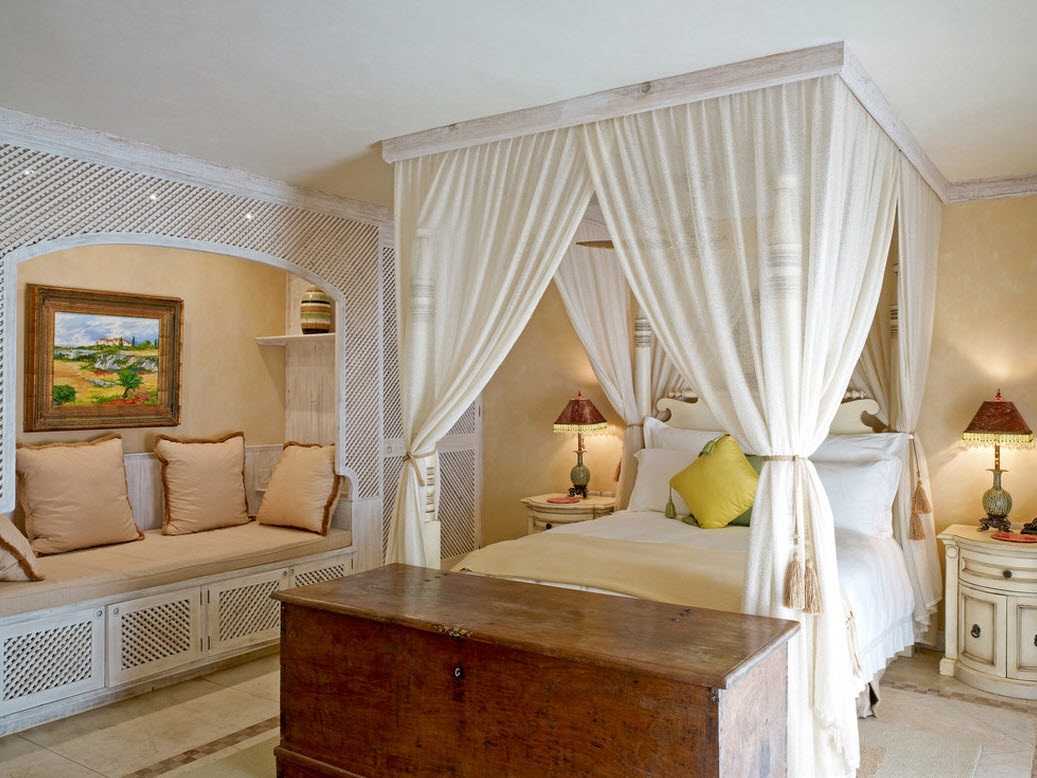При выборе кровати с балдахином необходимо учитывать размеры спальни, и в первую очередь высоту потолков.