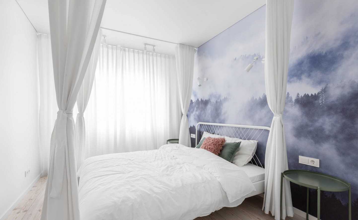 - Внутри образуется ужиное пространство, что особенно актуально в детской комнате, где живут два ребёнка. У каждого из них остаётся собственное место, личное пространство. В спальне взрослых полог над кроватью создаёт уют и интимную обстановку.