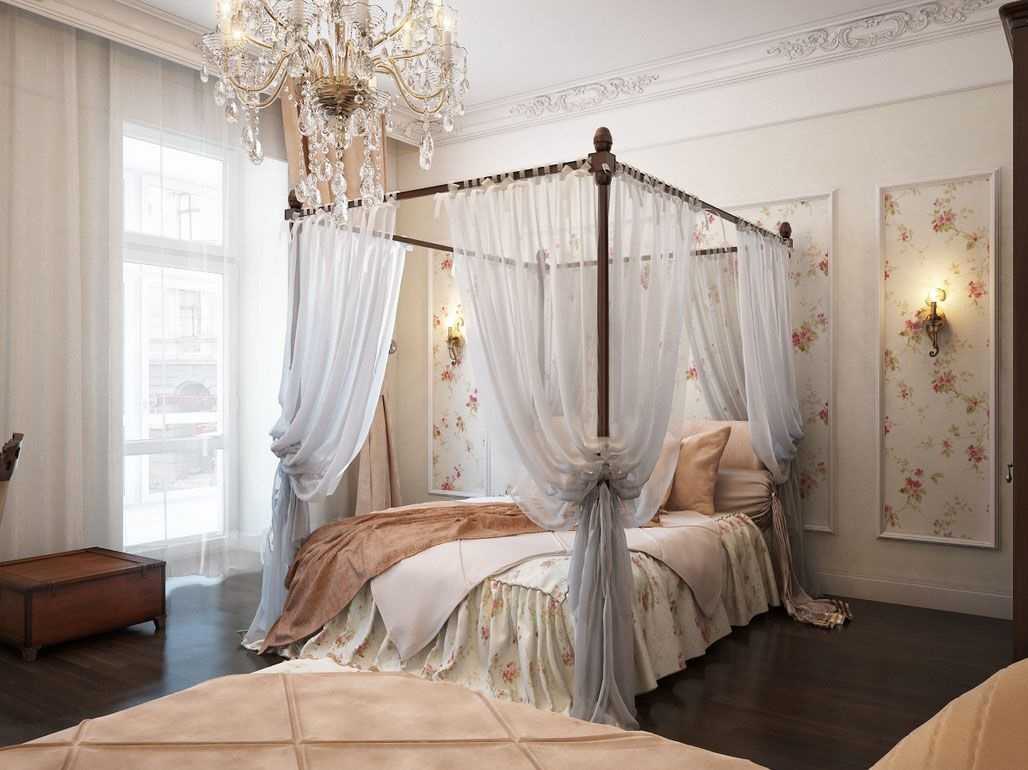 В спальне для взрослого человека хорошо смотрятся балдахины в следующих стилях.
