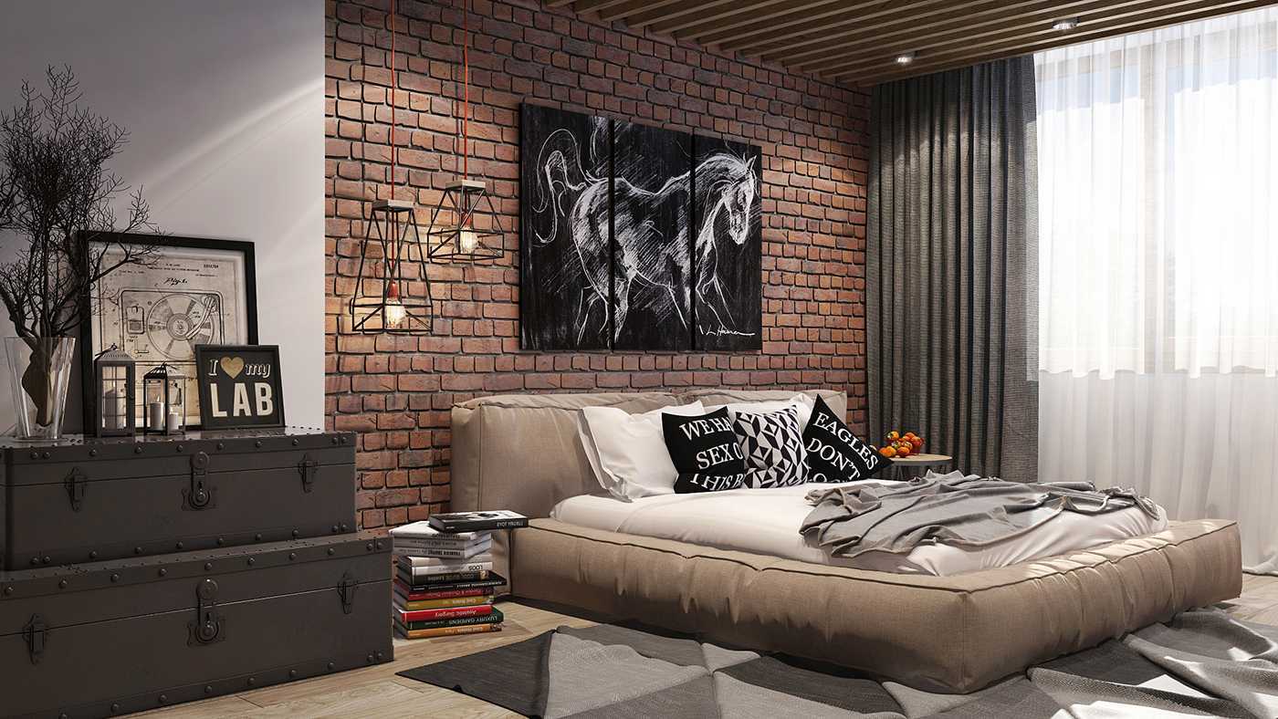 Интерьер в стиле лофт имеет незавершенный и необжитой облик, который придает спальне особый шарм.