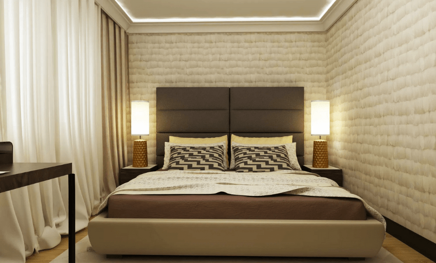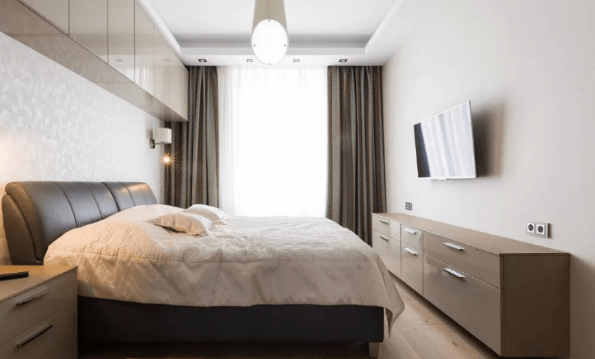 Стиль минимализм относится к современному типу дизайна и универсален для спальни любой планировки и размеров. Его главная особенность — максимум свободного пространства.
