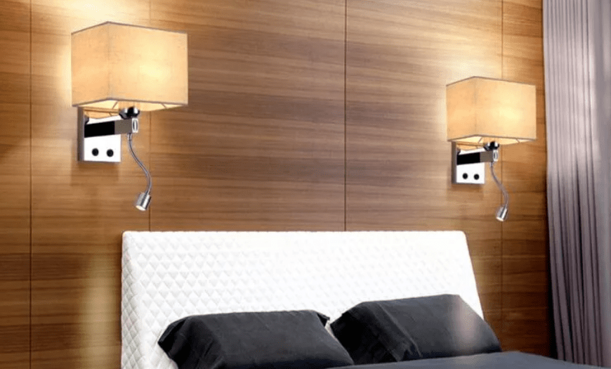 В зоне для сна лучше обойтись без яркого верхнего света и нависающих крупногабаритных люстр. Чтобы создать мягкую атмосферу будет достаточно несколько точечных светильников на потолке, настенных бра и одного-двух удобных торшеров на прикроватных тумбочках.