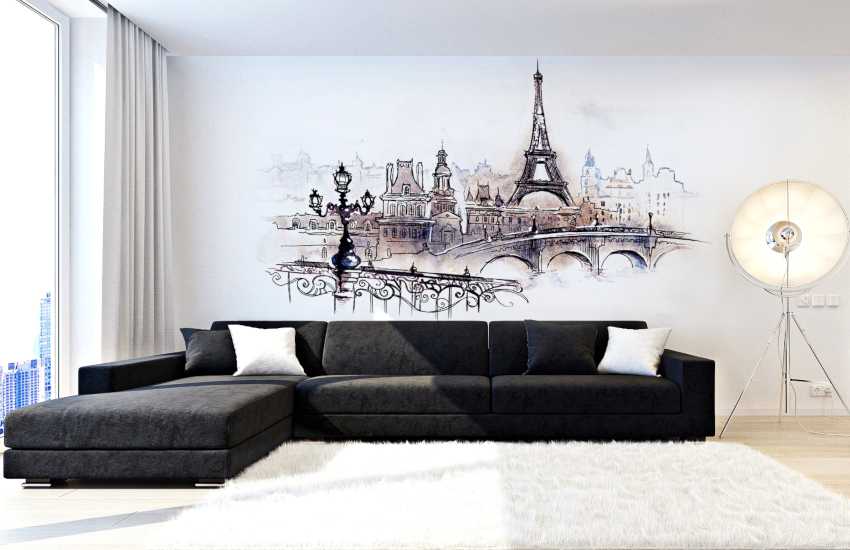 - На стену повесьте картину или фотографию крупного формата либо изображения с абстракцией.
