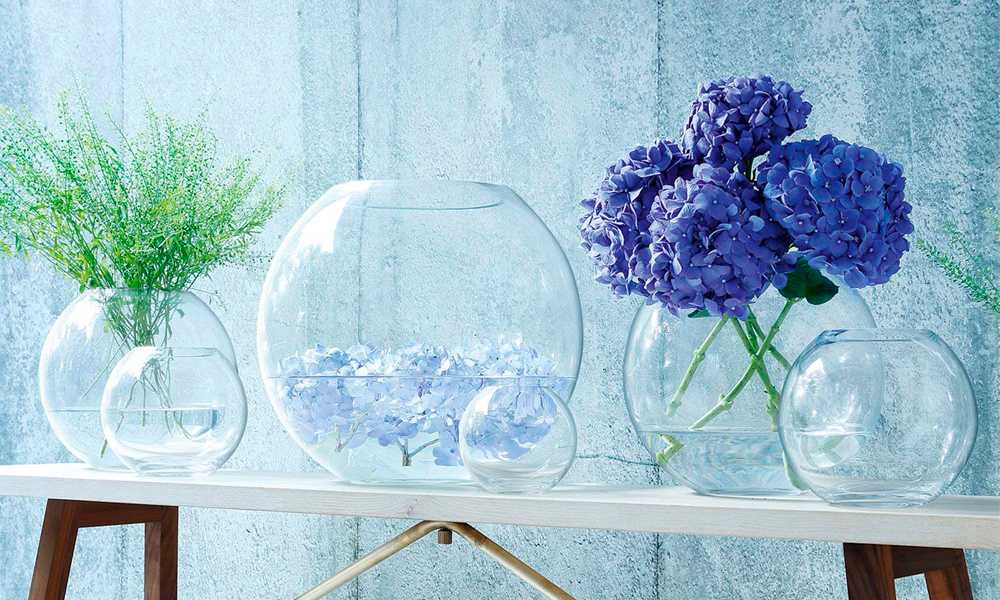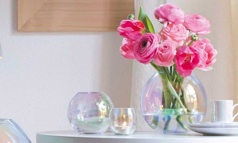 Разнообразные вазы от лаконичных прямоугольных и цилиндрических из стекла до необычных в виде перламутровых шаров или сложных композиций из нескольких сосудов на подставке.