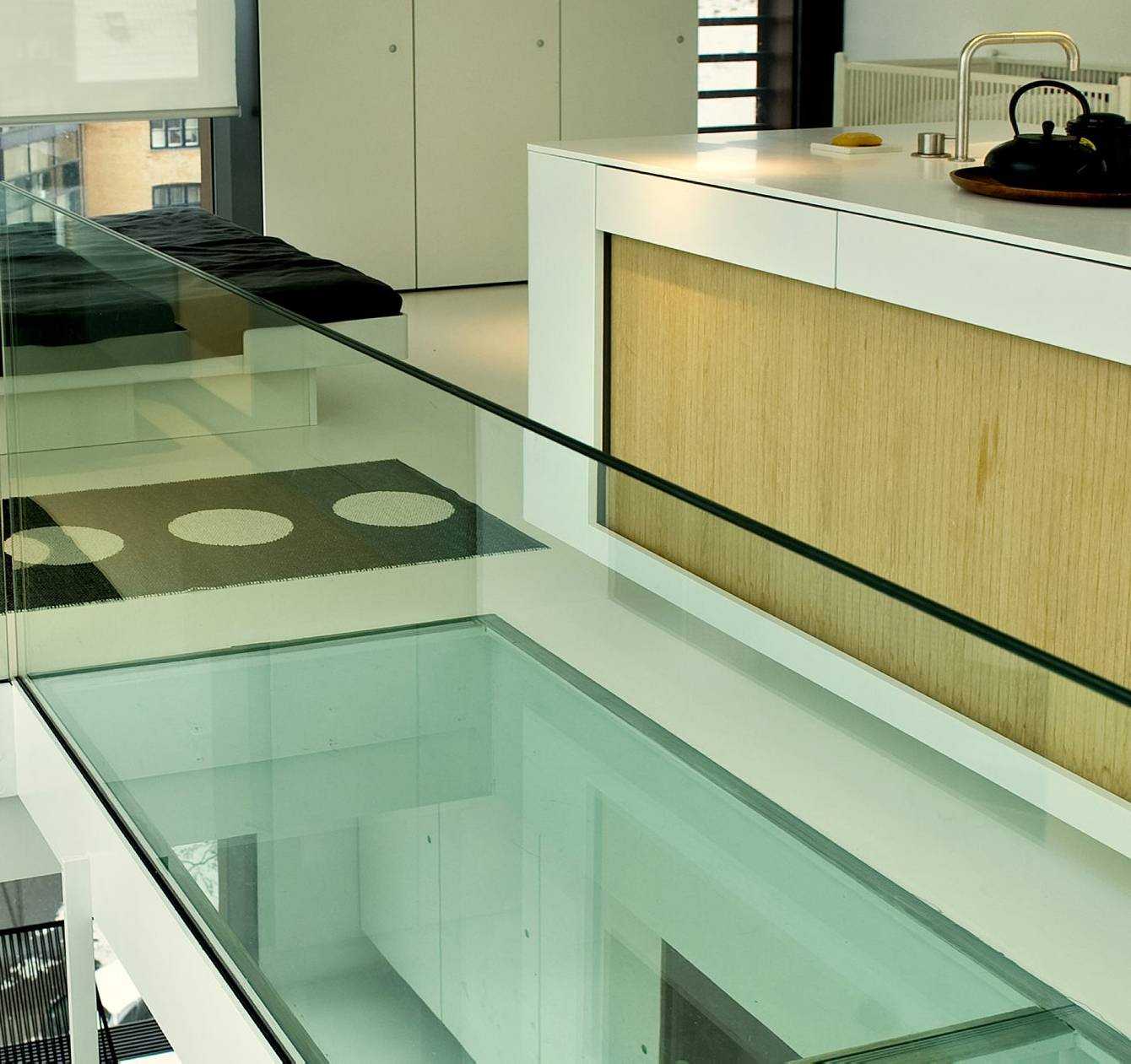Триплекс — так называют самый прочный вид стекла, который состоит из трёх слоёв. Только такой материал можно использовать, когда стоит задача сделать прозрачное перекрытие между этажами. Получается прозрачный потолок, который одновременно играет роль перекрытия. По сути, это окно в потолке, сквозь которое можно увидеть небо или верхний этаж