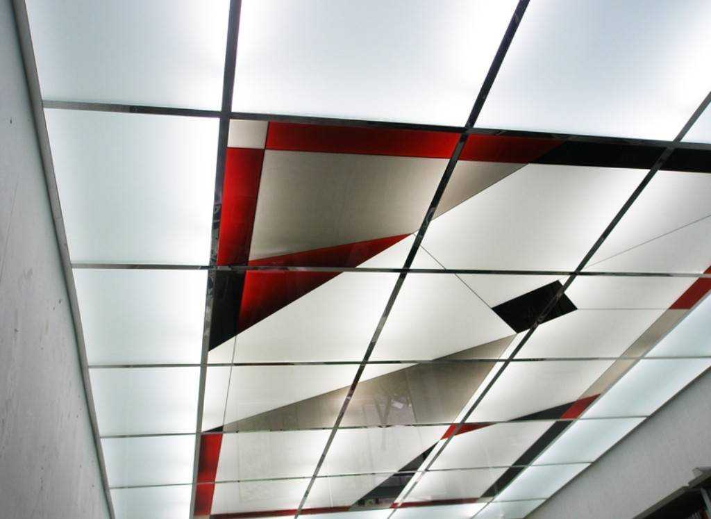 Потолок стеклянный используется редко, в основном — не в жилых помещениях. Может использоваться как комбинированная декоративная деталь.