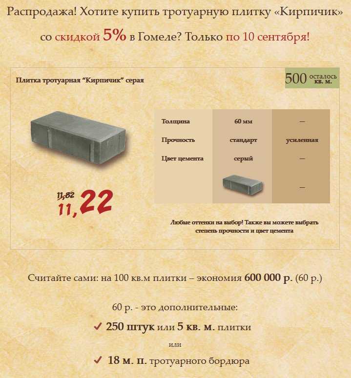 Определяющее значение имеет, каким способом была изготовлена плитка – вибролитье или вибропрессование. Плитка кустарного производства, выполненная путем вибролитья – менее устойчива и быстрее изнашивается, а промышленная (вибропрессованная) прослужит порядка 100 лет.