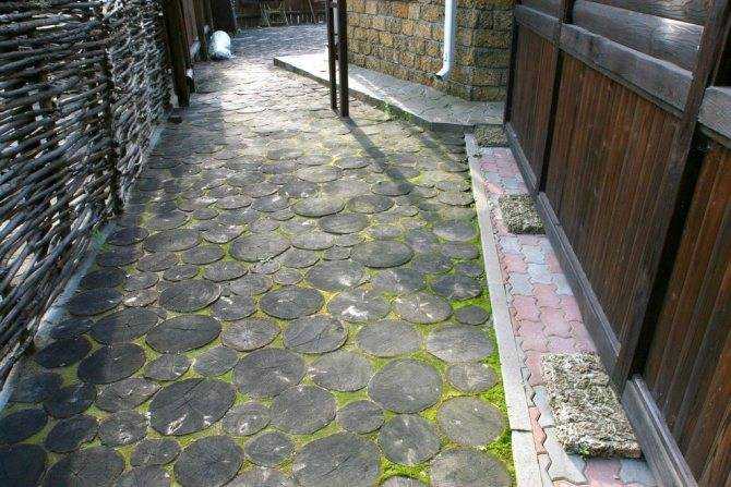 Благодаря натуральной древесной фактуре, подобная отделка придаст экстерьеру особой экологичности и прекрасно подойдет для декорирования дорожек, ступеней или клумбы.