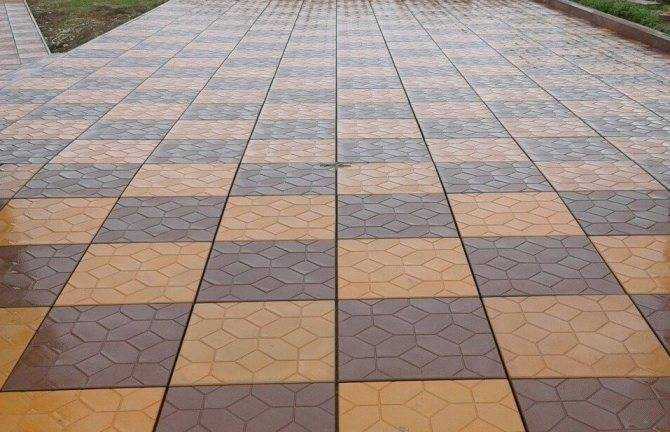 - в зависимости от площади поверхности плитку располагают без сдвига по вертикали (поверхность удлиняется) или горизонтали (площадка или дорожка расширяется);