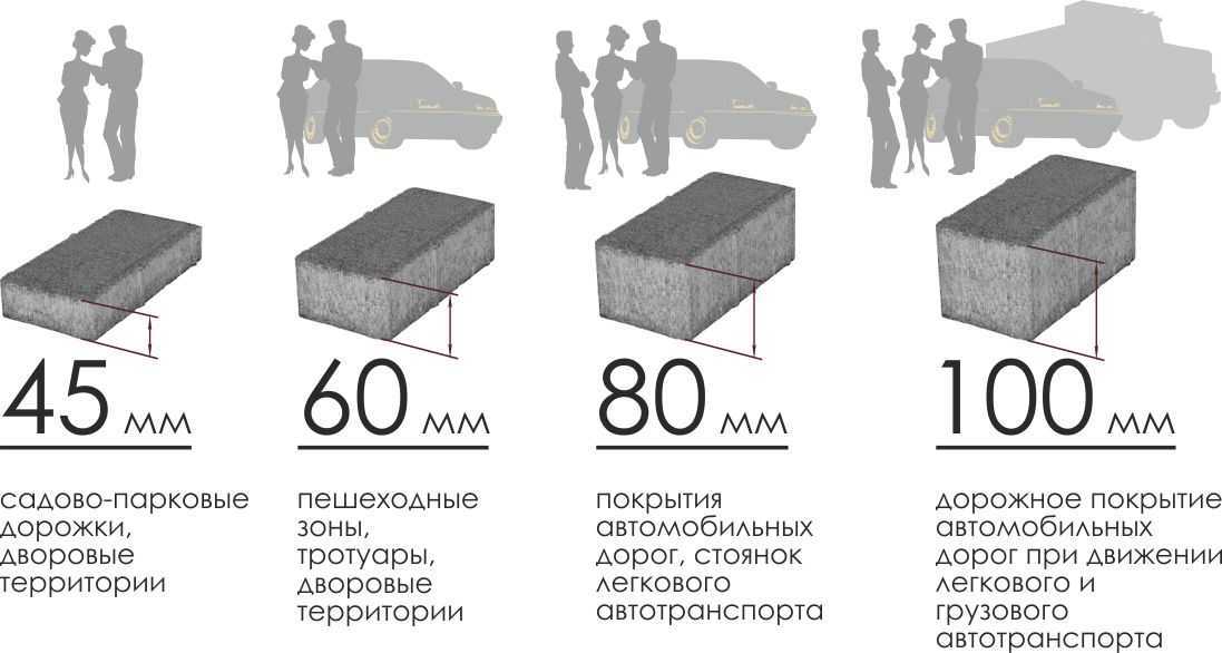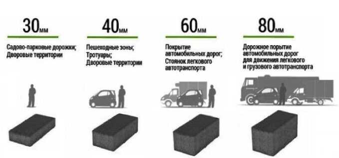 Важной характеристикой является толщина. Если нужно уложить дорожки, подбирайте размер 3–4 см