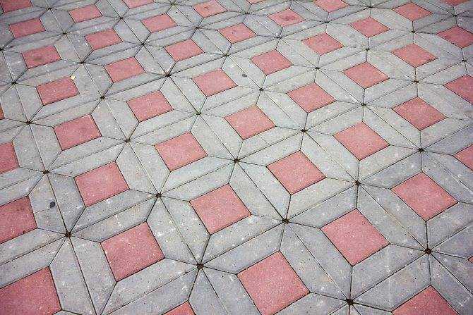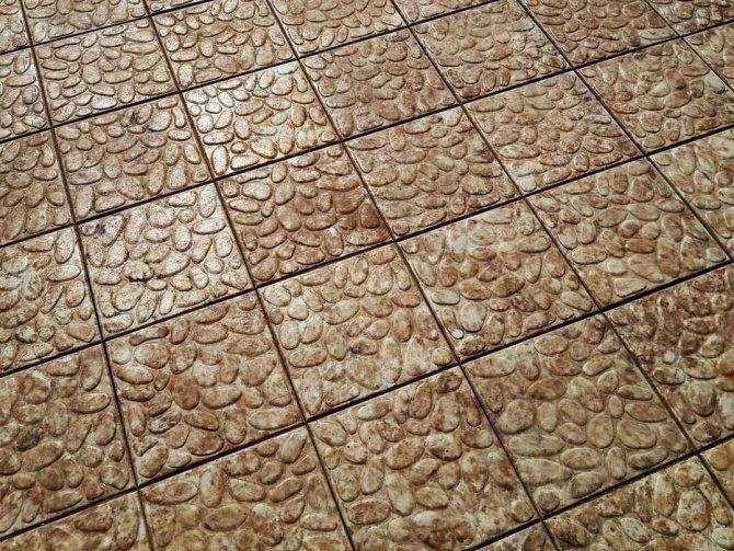 Может быть рельефной и представлять собой квадраты, со срезанными под круг углами или гладкой, отличающейся сложной структурой и многообразием форм, плиткой.