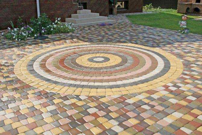 За счет небольшого размера, с помощью мозаики можно создать самые разнообразные художественные рисунки при мощении дорожек.