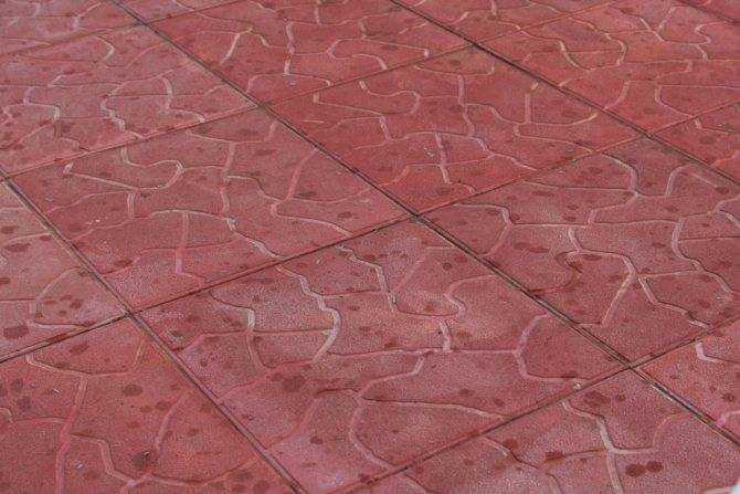 Стойкость материала к истиранию. Наиболее подходящими вариантами являются элементы с наличием керамического покрытия и литые бетонные. Если плитка плохого качества, то она быстро растрескается в первый сильный мороз. Есть резиновые покрытия, которые отличаются высокой стойкостью к негативному воздействию механических повреждений, отсутствием выгорания под солнечными лучами. Если человек падает на поверхность, он не получит травму. Минус резиновых плиток – они могут деформироваться под солнцем.