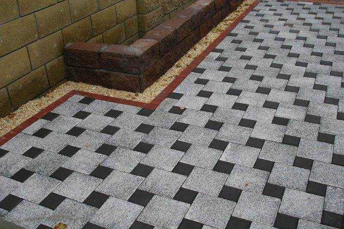 На фото тротуарная плиточная отделка ромбовидной формы в экстерьере.