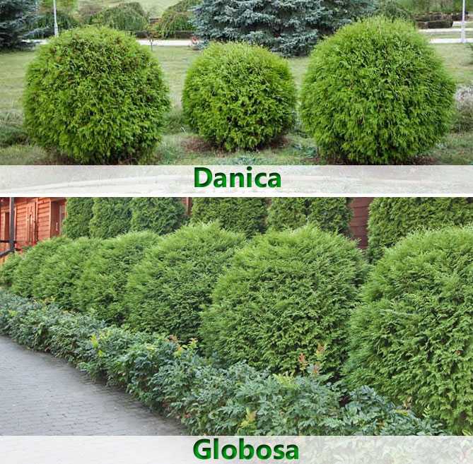 Туя «Даника» очень похожа на тую «Глобаза», но они отличаются величиной шара