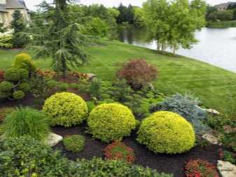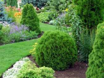 Шаровидную тую широко применяют в ландшафтном дизайне. Сортовое многообразие позволяет ее использовать в дизайнерских композициях любого вида: