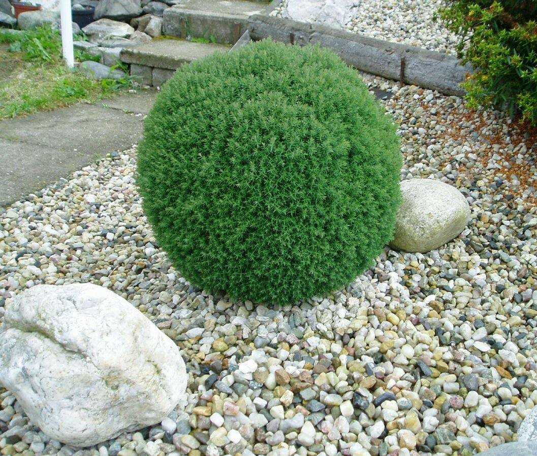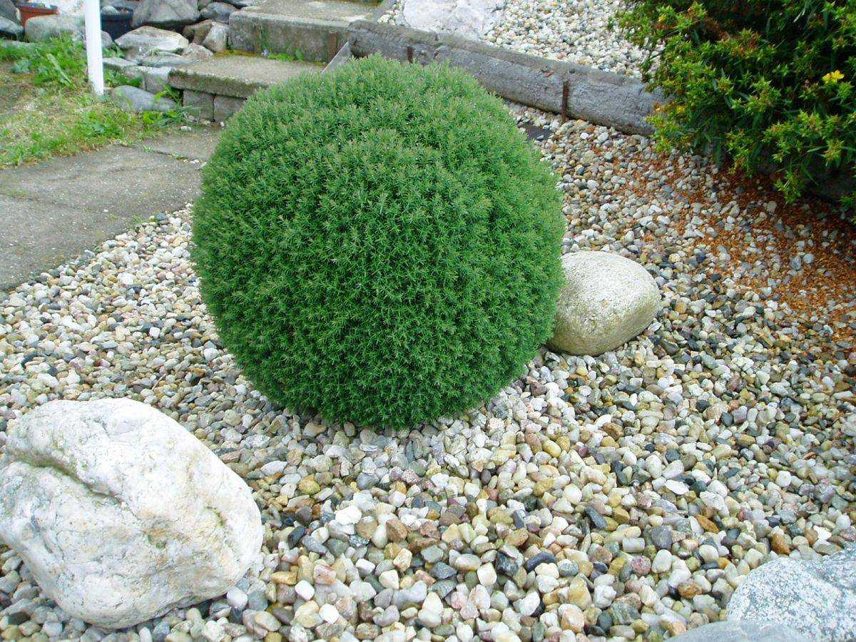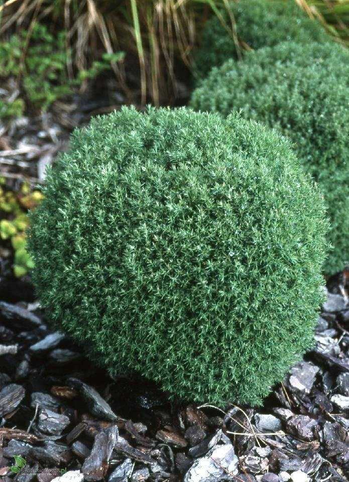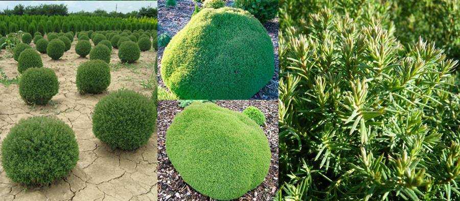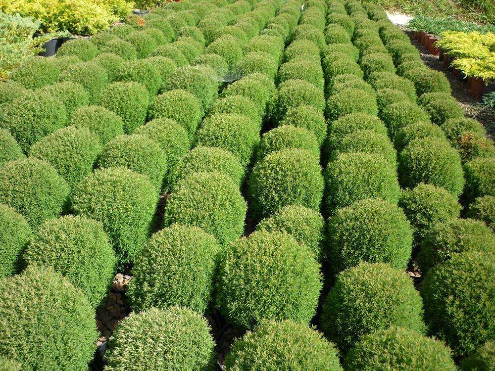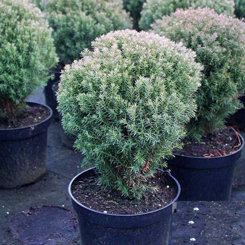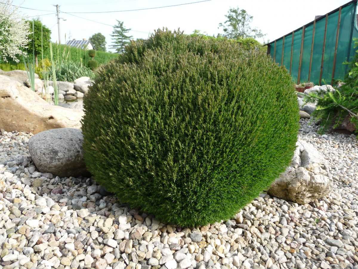 Вечнозеленые ветки образуют аккуратный шар, поэтому не каждая сортоформа нуждается в корректирующей стрижке. Кустики-долгожители вегетируют по 50 – 145 лет. Развиваются медленно, к столетию вырастают до одного, реже – двух метров. Пушистые шары выращивают группами или по одному. Для оформления зон отдыха, террас шарообразные культивары высаживают в вазоны.