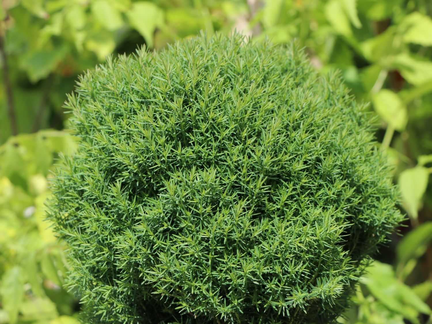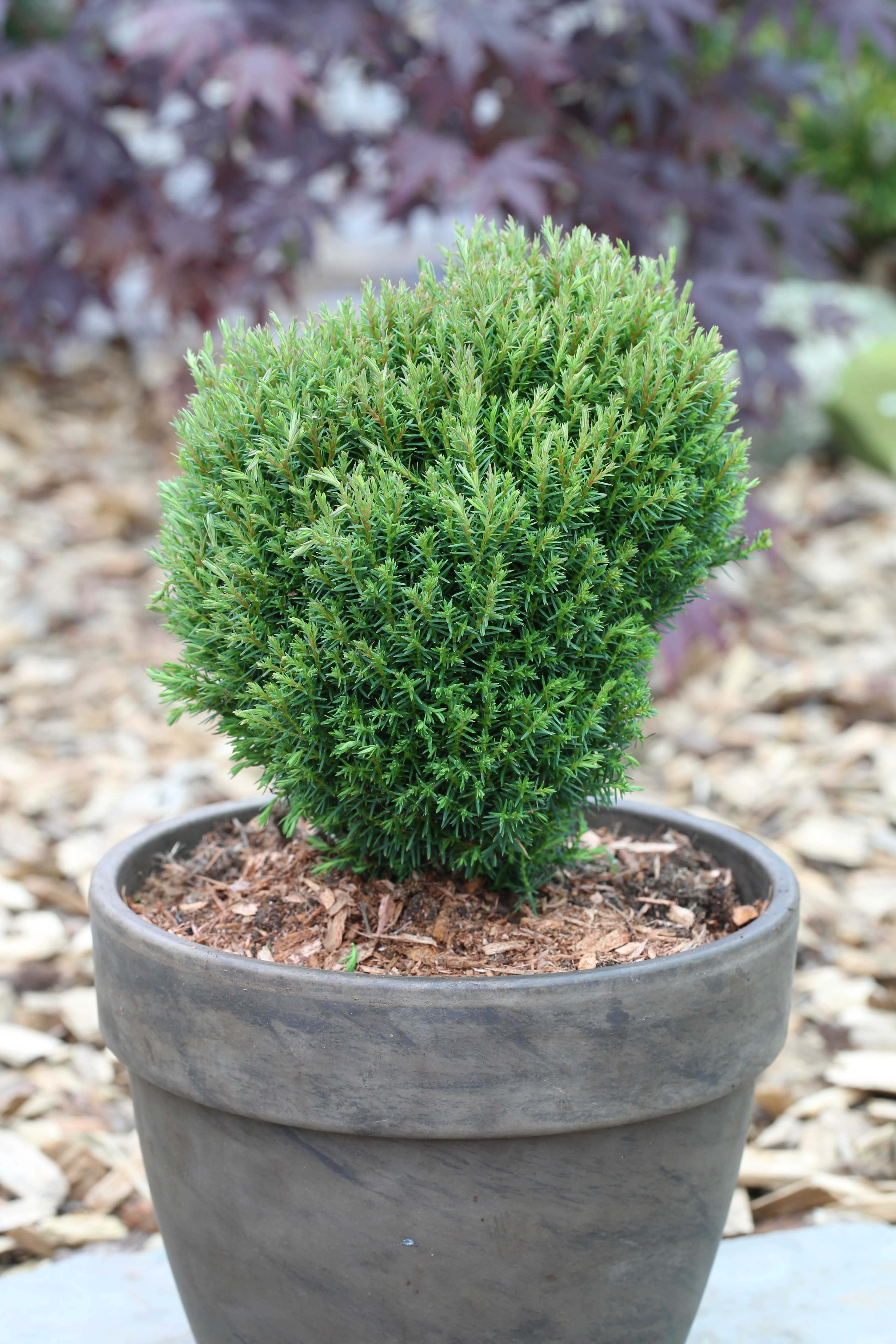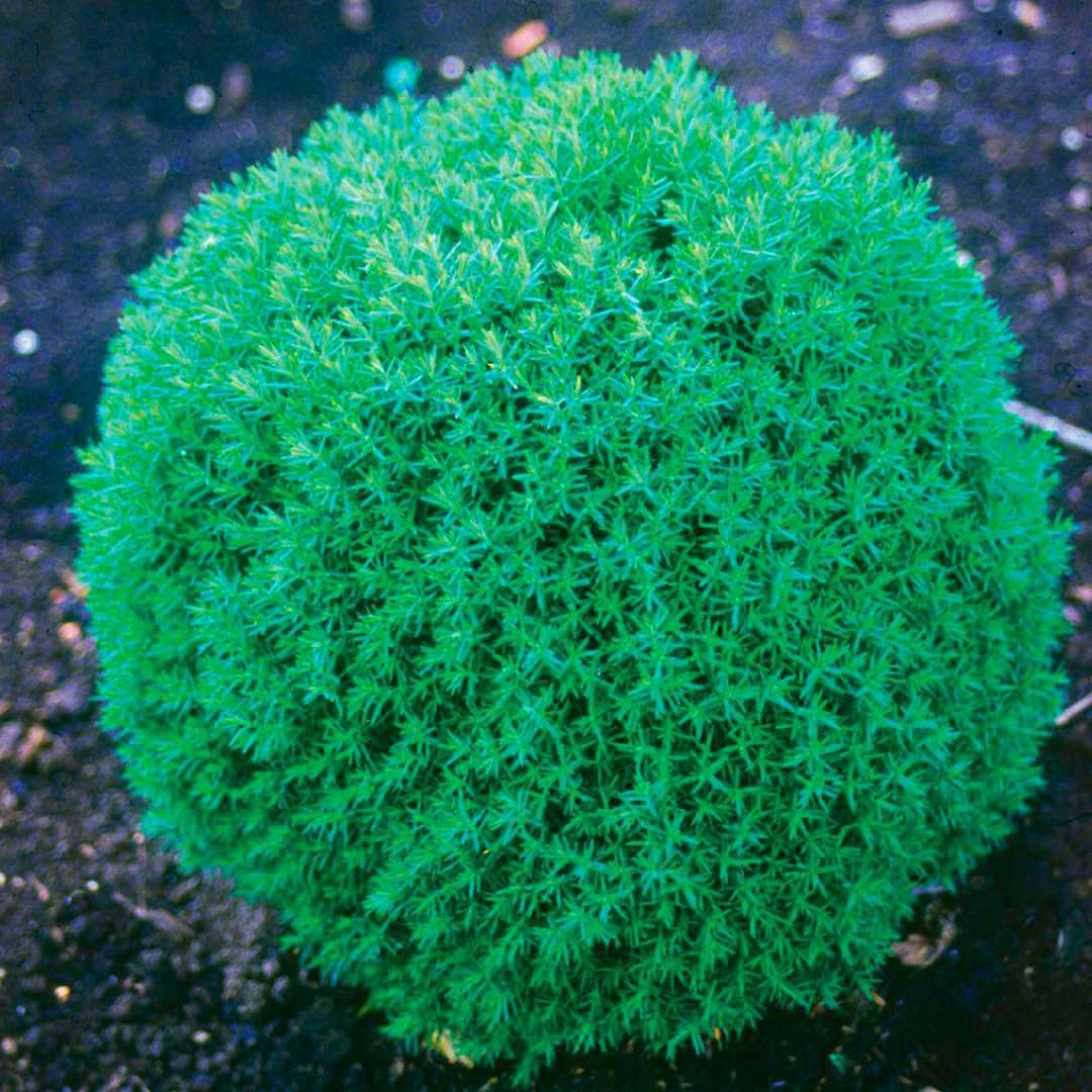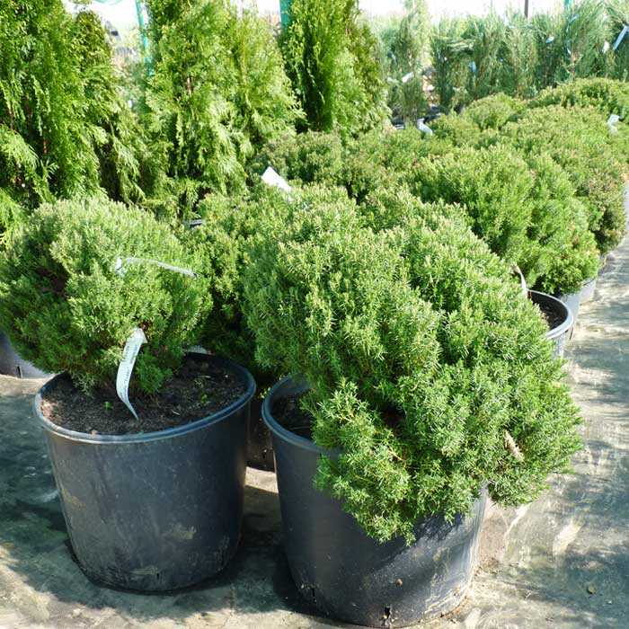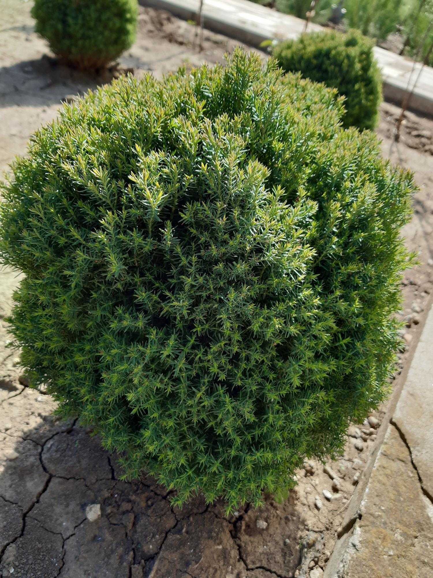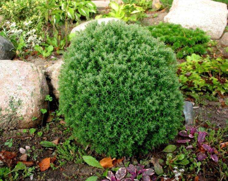 Вечнозеленые ветки образуют аккуратный шар, поэтому не каждая сортоформа нуждается в корректирующей стрижке. Кустики-долгожители вегетируют по 50 – 145 лет. Развиваются медленно, к столетию вырастают до одного, реже – двух метров. Пушистые шары выращивают группами или по одному. Для оформления зон отдыха, террас шарообразные культивары высаживают в вазоны.