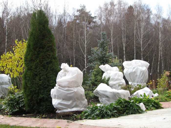 На зиму кустарник укрывают агроволокном