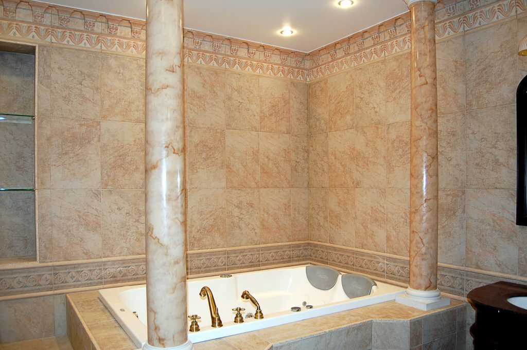Отделка позволяет подчеркнуть роскошь всех классических стилей, но с успехом применяется и в современных направлениях арт-деко или хай-тек. Великолепно смотрятся обработанные стены как в небольших ванных комнатах, так и в помещениях с бассейнами.
