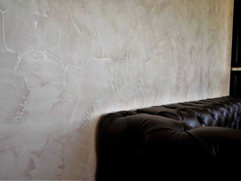 Венецианская штукатурка может имитировать мрамор, малахит, оникс, гранит, травертин, кварц, яшму. В состав входит каменная крошка, которая воссоздает текстуру горной породы. Обычно используется в классическом стиле, арт-деко, минимализме, модерне.