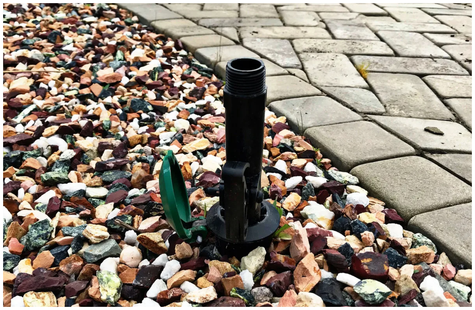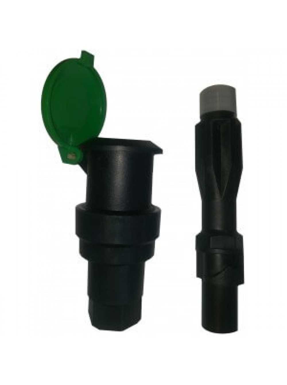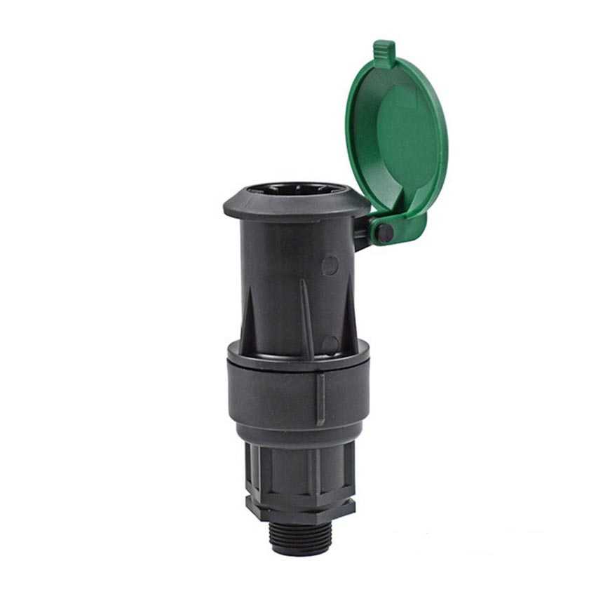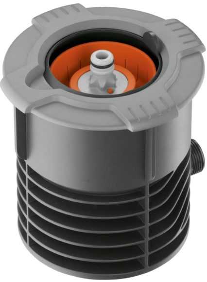 Водяная розетка от известного производителя садового оборудования. Представляет собой пластиковый цилиндр с плавно отодвигающейся подпружиненной полусферической крышкой.