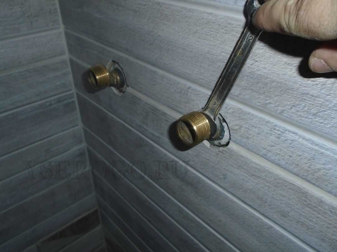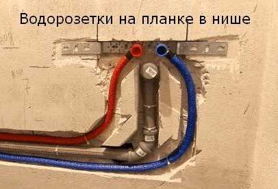 Крепление водорозетки в нише просто посмотрим на фото, а варианты крепления на подкладке рассмотрим подробнее, на примере установки настенного смесителя.