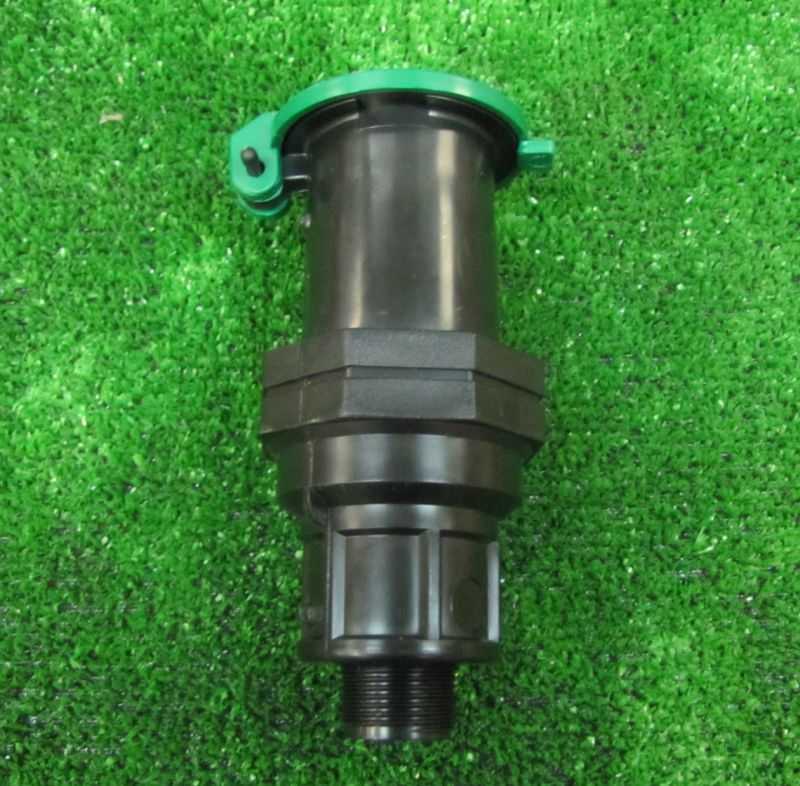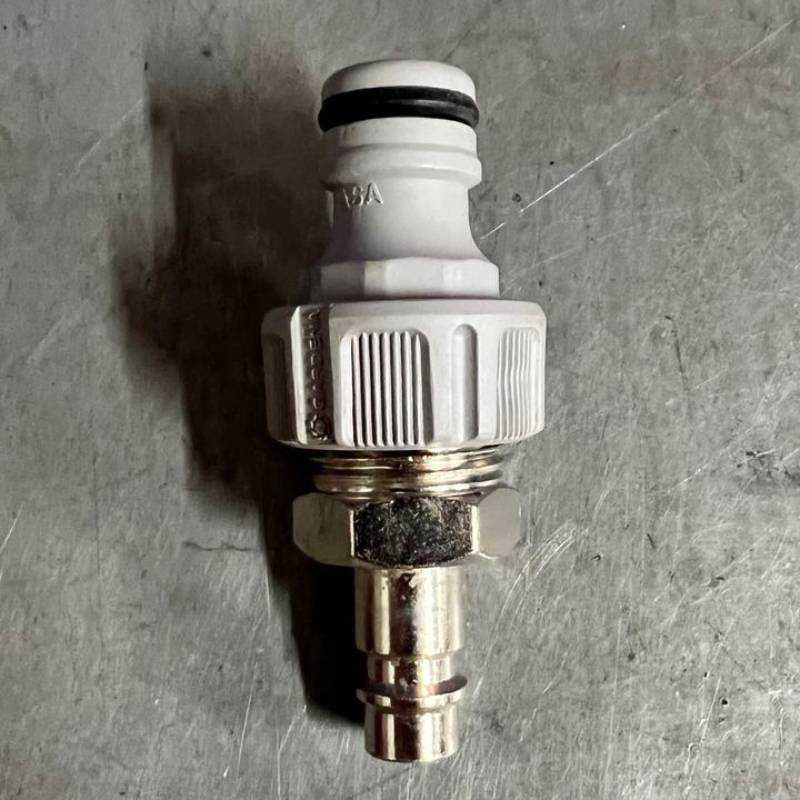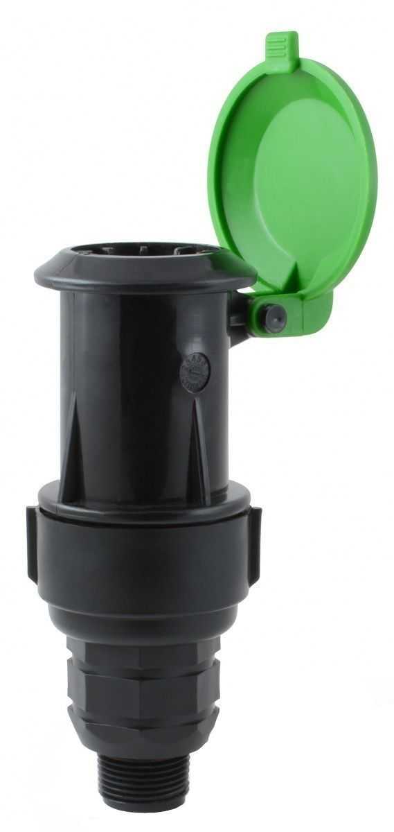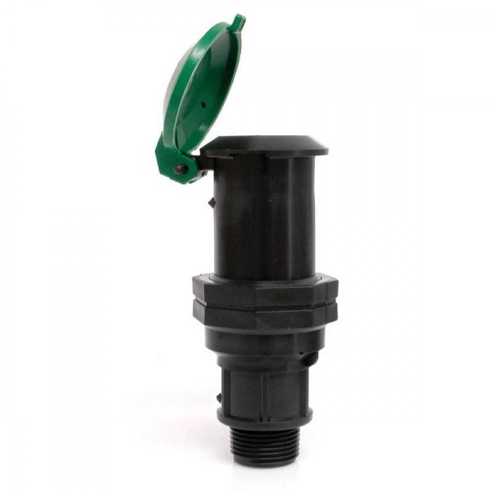 Через такой штуцер я подключаю компрессор к системе полива. Компрессор — это специальное устройство, которое нагнетает в систему воздух под высоким давлением