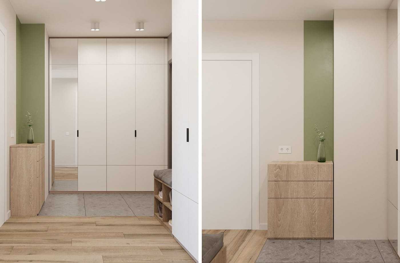 Еще один вариант исправления формы узкой прихожей – разделение комнаты на две зоны. Стены возле входной двери оформляются в одной цветовой гамме, а отдаленные участки комнаты декорируются другими оттенками. Чтобы такой интерьер выглядел гармоничным, используйте цвета, близкие по тональности.