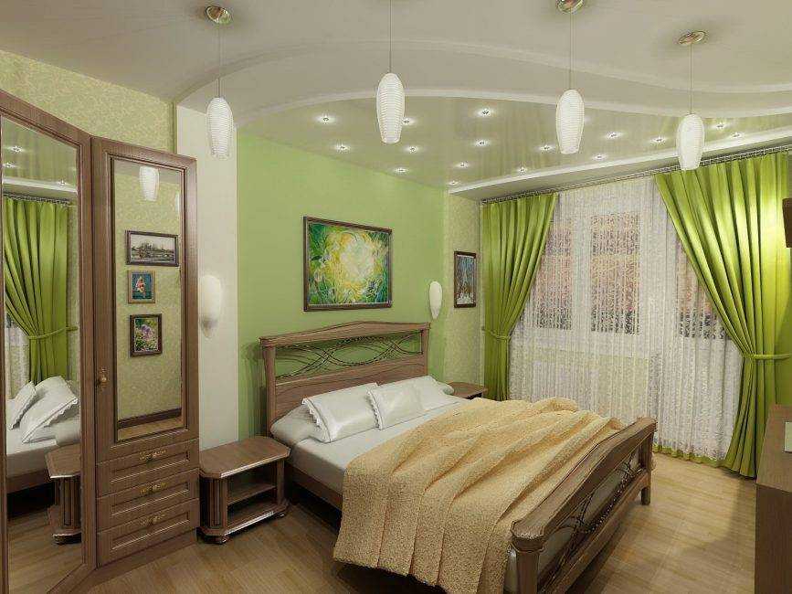 Шторы в зеленой спальне