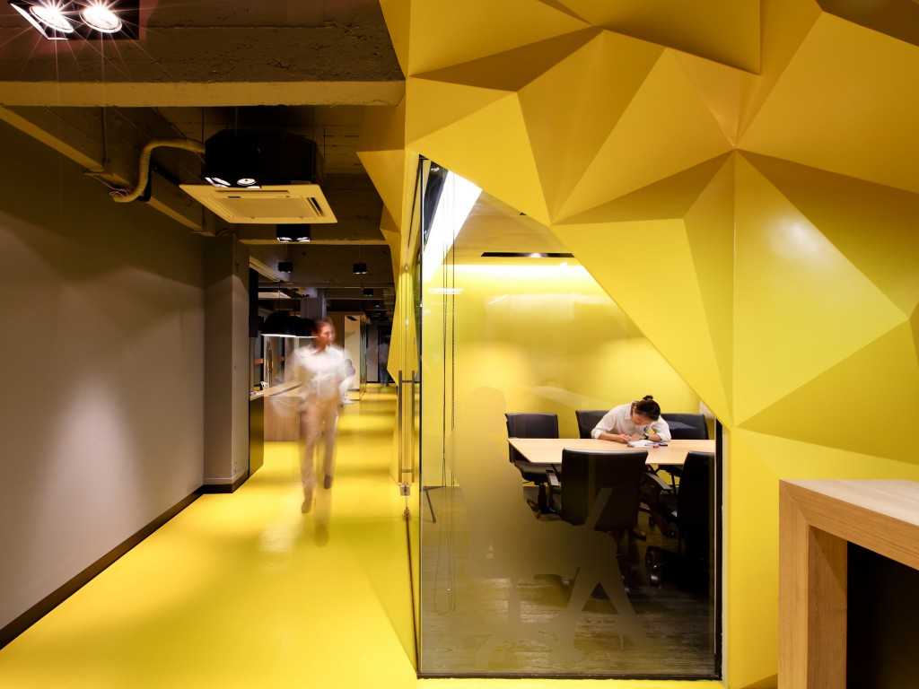 Поскольку оттенки желтого в интерьере стимулируют умственную деятельность и улучшают работоспособность, именно такой дизайн стоит выбрать для кабинета или офиса.