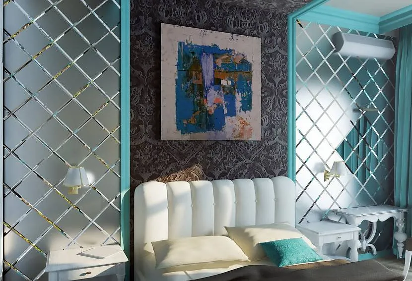 Зеркальная стена. Прием, чаще применяемый в классических и модерновых интерьерах. Фацетный декор занимает всю стену и делает ее акцентом комнаты
