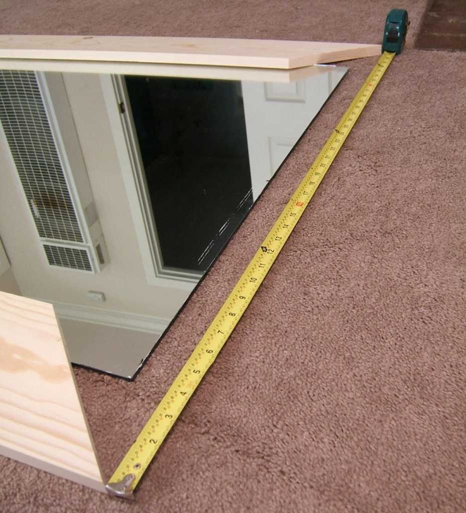 Этот шаг является своего рода просто двойной проверкой, но это хорошая идея. После размещения длинной части рамки на зеркале, измерьте длину верхней и нижней частей и повторите вышеописанные действия.
