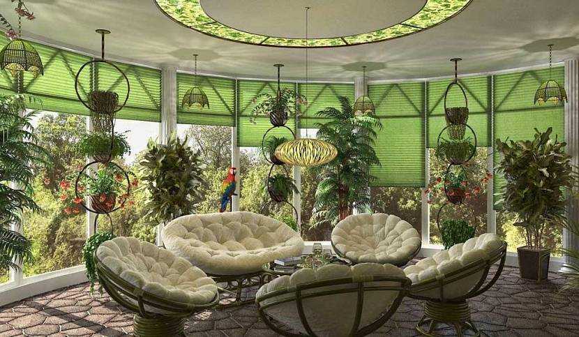 Дизайнерские решения, применяемые для зимнего сада, будут напрямую зависеть от площади всего помещения, от особенности конструкции, а также вида растущих культур.