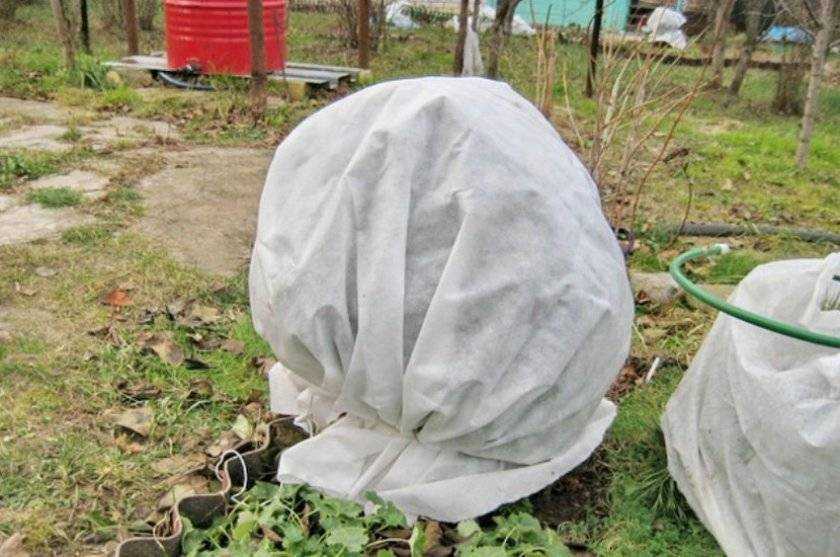 Молодые экземпляры требуют укрытия, которое создаётся из металлических дуг и нетканого материала, пропускающего воздух, например, агроволокна. Конструкцию нужно снять весной, после оттаивания снега.