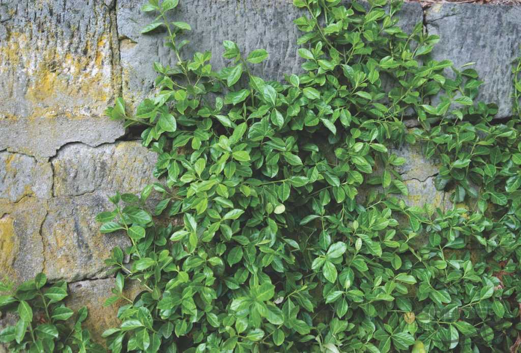 Цветок бересклет укореняющийся еще называют Форчуна. Это стойкое, неприхотливое, стелящееся растение с блестящими листиками зеленого цвета вытянутой формы. Часто из него формируют кустарник ампельной формы.