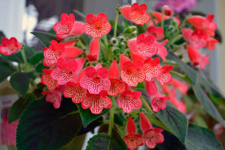Очень распространенное комнатное растение, обладающее мясистыми пушистыми цветами трубовидной формы. Часто бывают двухцветными. Особенно распространен фиолетовый цвет. Колерия боится солнечные лучи и опрыскивание, поэтому ее лучше ставить в полутень и поливать только в основании стебля.
