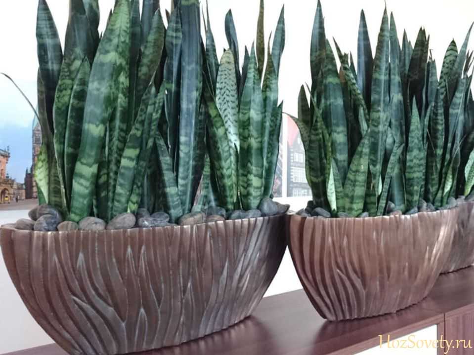 Помимо этого сансевиерия поглощает практически все опасные химические вещества, например, формальдегид, оксиды азота.