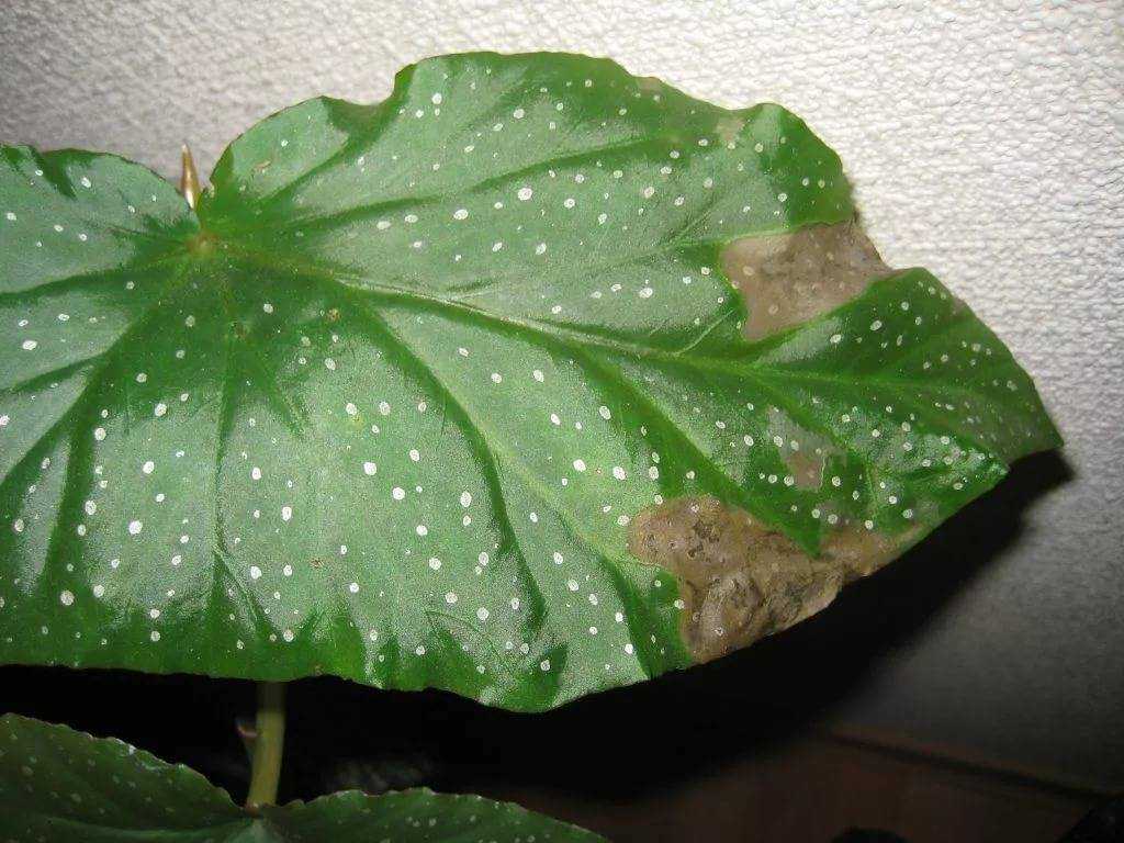 резкое изменение условий произрастания. Многие делают большую ошибку, выставляя цветок на балкон. Некоторые виды не переносят такой перемены. Бегония является чувствительным растением, и смена условий отражается на ее листве. Цветок не переносит, когда на него попадают прямые солнечные лучи или, когда оно стоит на сквозняке; слишком сухой воздух. Бегония является цветком тропического вида, поэтому идеальными условиями для нее будут высокая температура и влажный воздух. Сухой воздух негативно отразится на листьях. Часто в квартирах подобное возникает, когда зимой включают отопление или при слишком жарком лете; недостаточно питательных веществ. Растение необходимо подкармливать, когда происходит активная вегетация. Это бывает 2-3 раза в месяц