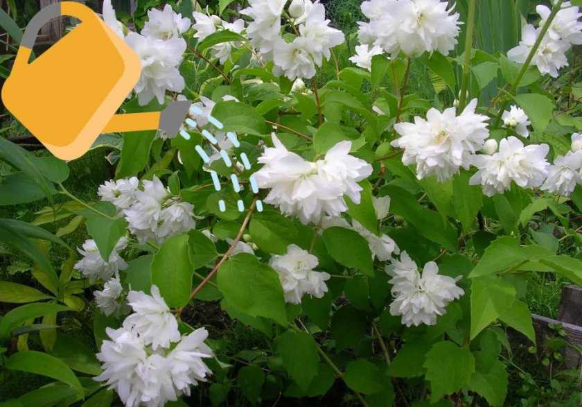Когда цветет жасмин, ему требуются регулярные подкормки в виде комплексных жидких смесей. Удобрения длительного действия культура не любит. В период активной вегетации питательная смесь вносится 1 раз в неделю. В период покоя вносить удобрения нельзя.
